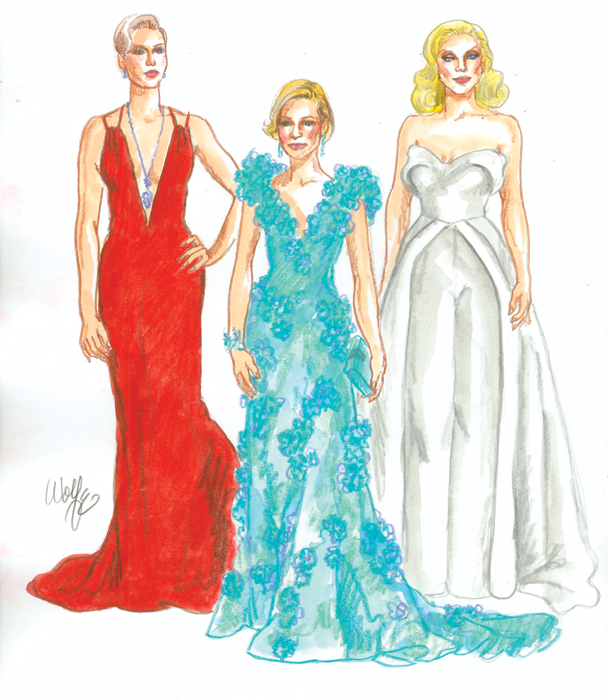 | Diversity in Design on Charlize Theron, Cate Blanchett and Lady GaGa sketched by David. |